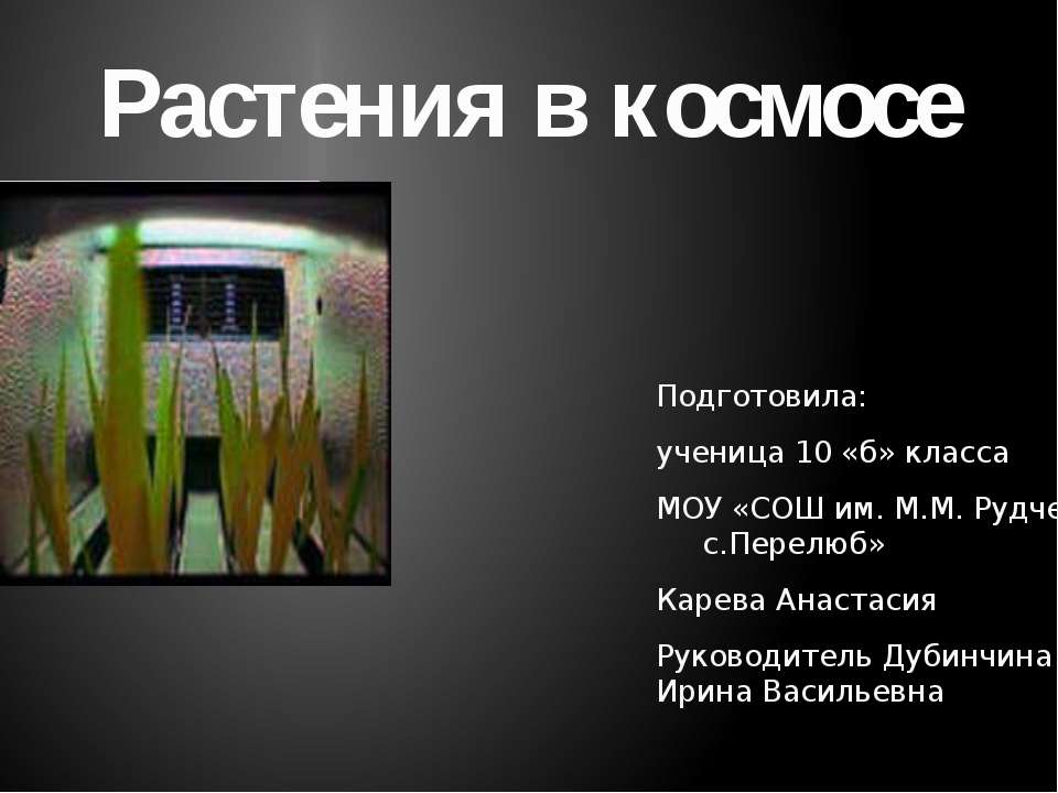 Подготовила: ученица 10 «б» класса МОУ «СОШ им. М.М. Рудченко с.Перелюб» Карева Анастасия Руководитель Дубинчина Ирина Васильевна Растения в космосе