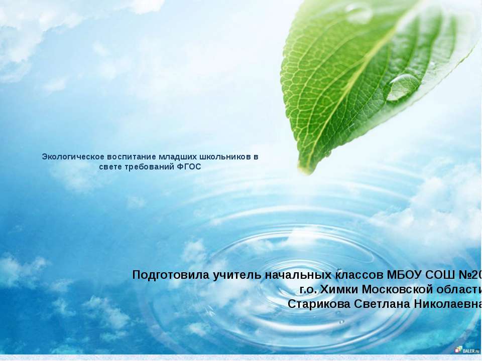 Экологическое воспитание младших школьников в свете требований ФГОС Подготовила учитель начальных классов МБОУ СОШ №20 г.о. Химки Московской области Старикова Светлана Николаевна