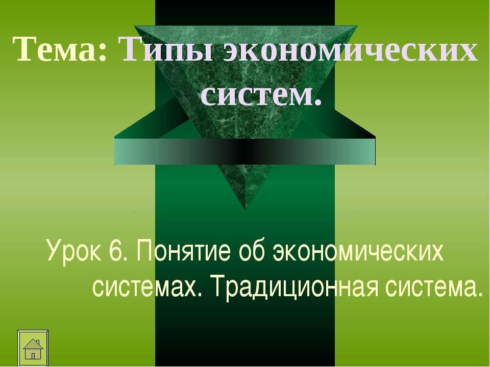 Урок 6. Понятие об экономических системах. Традиционная система. Тема: Типы экономических систем.