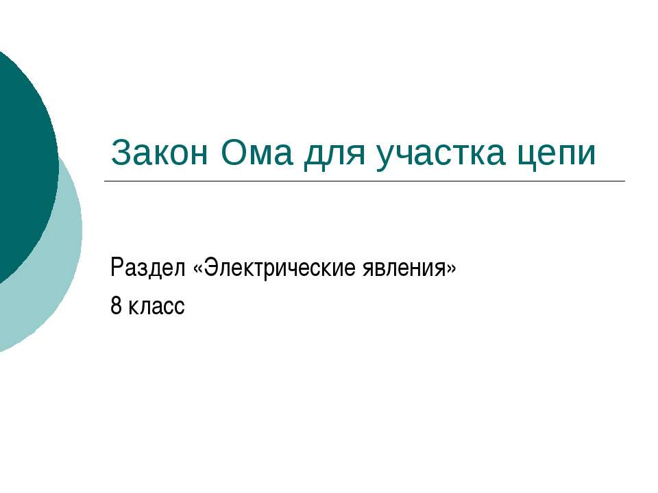 Презентация - "Закон Ома для участка цепи 8 класс"