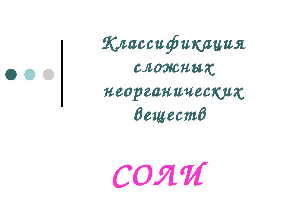 Презентация - "Классификация сложных неорганических веществ. Соли"