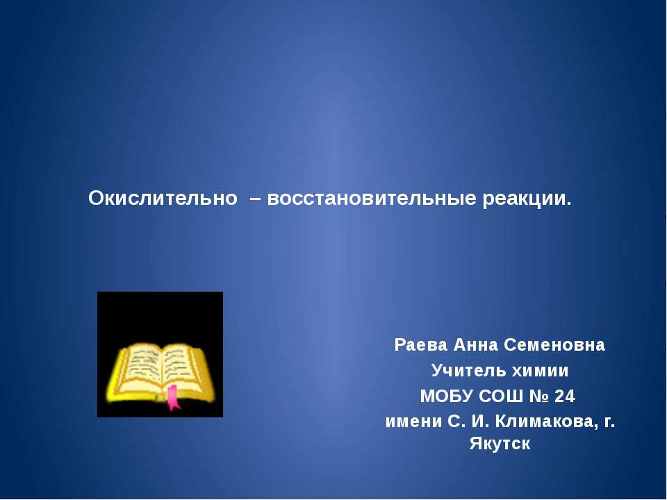 Окислительно – восстановительные реакции. Раева Анна Семеновна Учитель химии МОБУ СОШ № 24 имени С. И. Климакова, г. Якутск