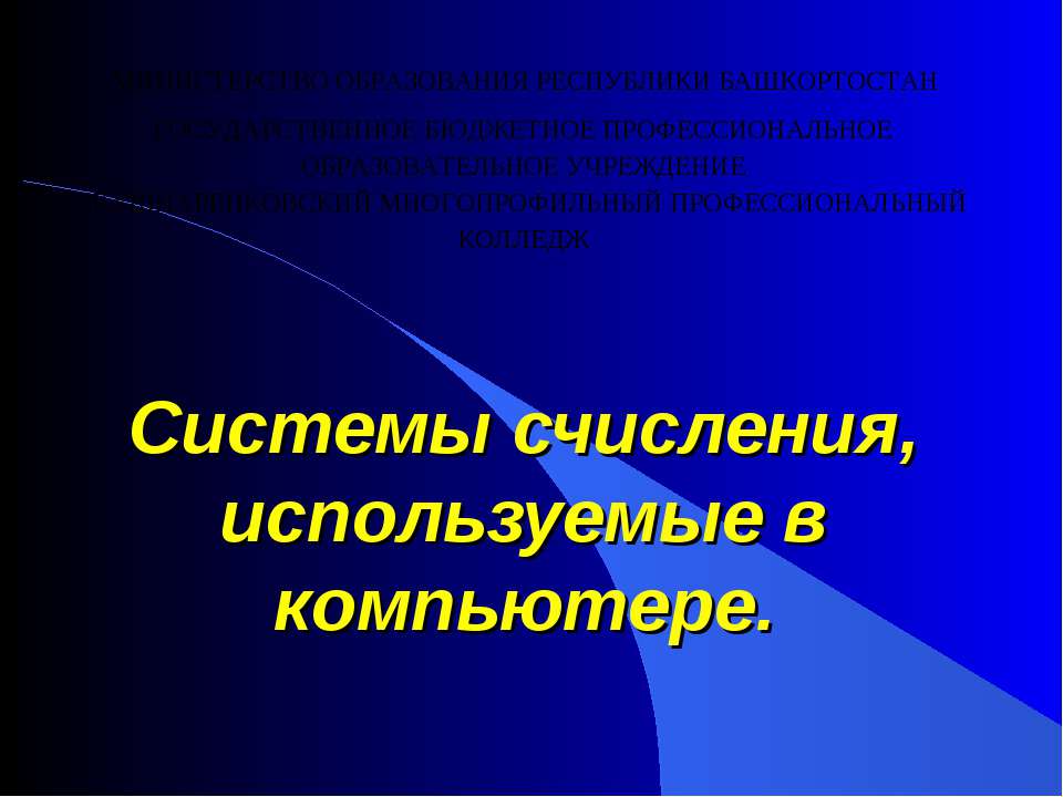 Системы счисления, используемые в компьютере. МИНИСТЕРСТВО ОБРАЗОВАНИЯ РЕСПУБЛИКИ БАШКОРТОСТАН ГОСУДАРСТВЕННОЕ БЮДЖЕТНОЕ ПРОФЕССИОНАЛЬНОЕ ОБРАЗОВАТЕЛЬНОЕ УЧРЕЖДЕНИЕ КУШНАРЕНКОВСКИЙ МНОГОПРОФИЛЬНЫЙ ПРОФЕССИОНАЛЬНЫЙ КОЛЛЕДЖ