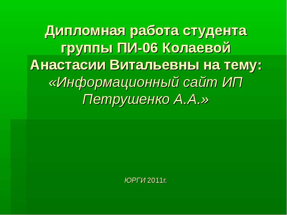 Дипломная работа студента группы ПИ-06 Колаевой Анастасии Витальевны на тему: «Информационный сайт ИП Петрушенко А.А.» ЮРГИ 2011г.