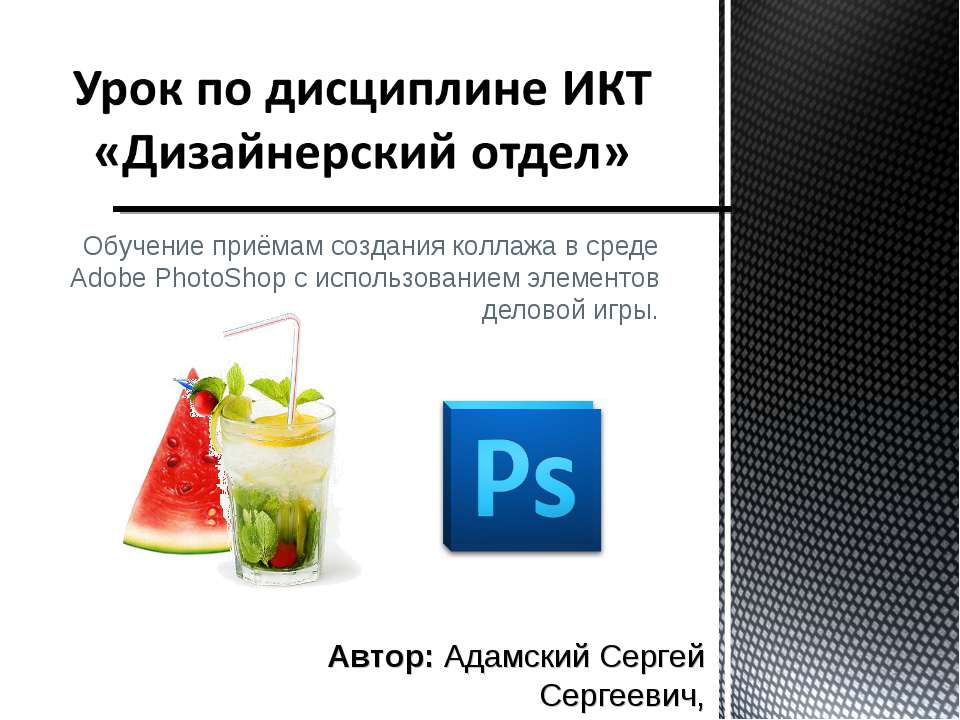 Обучение приёмам создания коллажа в среде Adobe PhotoShop с использованием элементов деловой игры. Автор: Адамский Сергей Сергеевич, студент группы 09ПВ