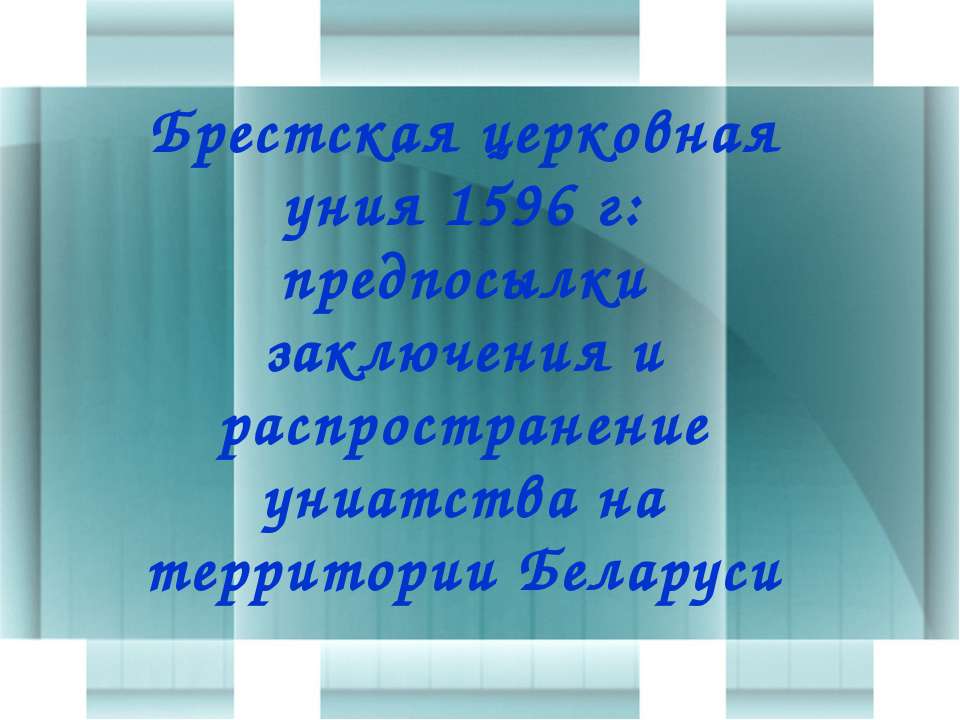 Презентация - "Брестская церковная уния 1596 г: предпосылки заключения и распространение униатства на территории Беларуси"