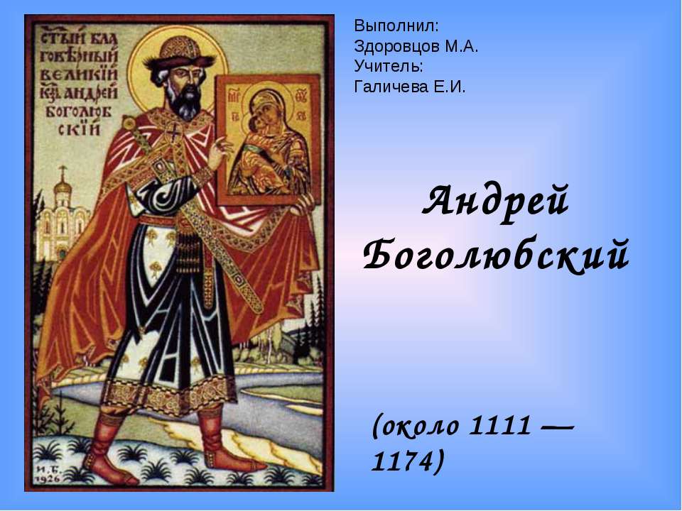 Просмотреть и скачать презентацию на тему "Андрей Боголюбский"