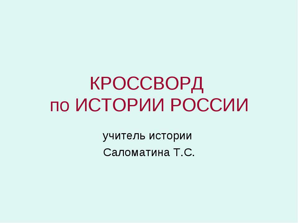 Просмотреть и скачать презентацию на тему "Кроссворд по истории России"