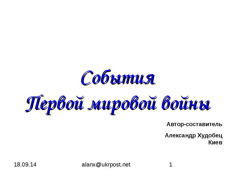 События Первой мировой войны Автор-составитель Александр Худобец Киев [email protected]