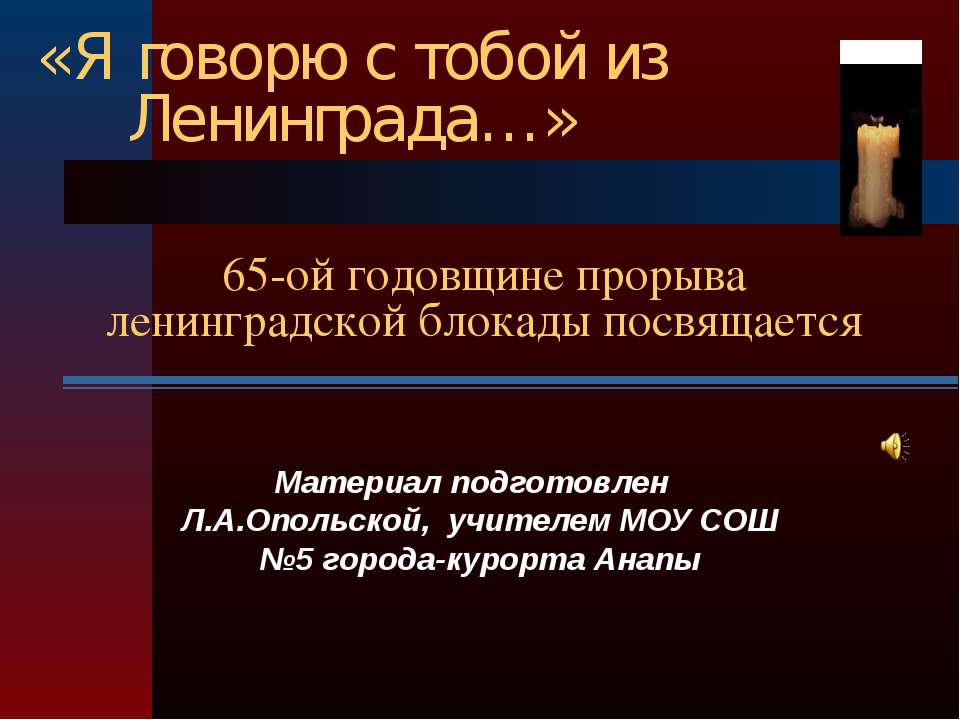 «Я говорю с тобой из Ленинграда…» 65-ой годовщине прорыва ленинградской блокады посвящается Материал подготовлен Л.А.Опольской, учителем МОУ СОШ №5 города-курорта Анапы
