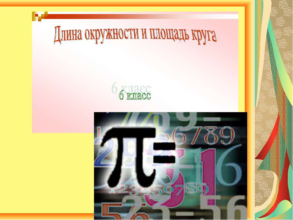 Просмотреть и скачать презентацию на тему "Длина окружности и площадь круга 6 класс"
