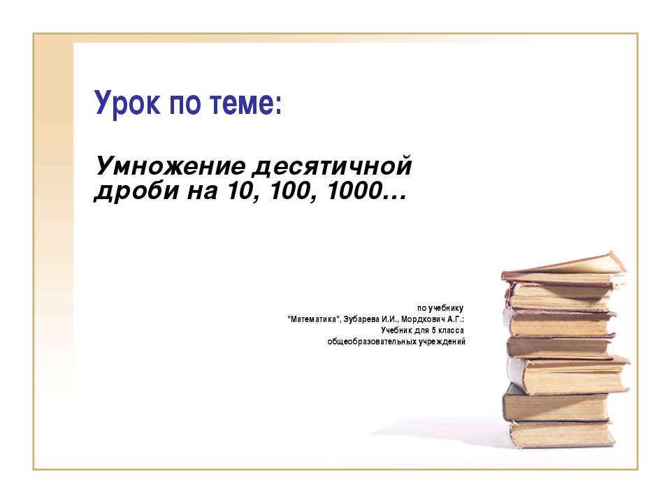 Урок по теме: Умножение десятичной дроби на 10, 100, 1000… по учебнику "Математика", Зубарева И.И., Мордкович А.Г.: Учебник для 5 класса общеобразовательных учреждений