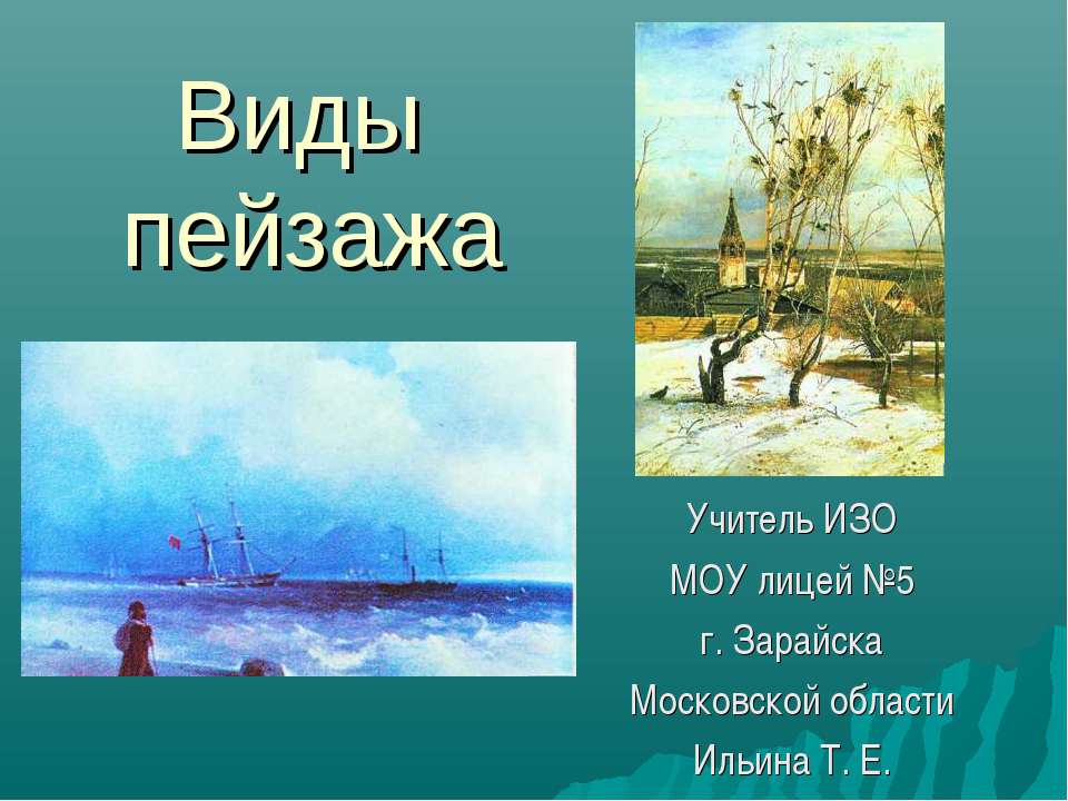 Цели урока: 1. Знакомство учащихся с видами пейзажа. 2. Научить ориентироваться в картинах с пейзажными сюжетами и самим определять вид.