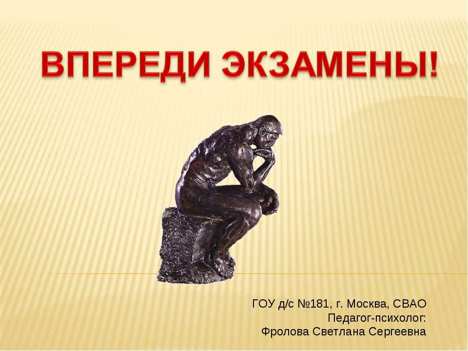 Просмотреть и скачать презентацию на тему "Впереди экзамены"