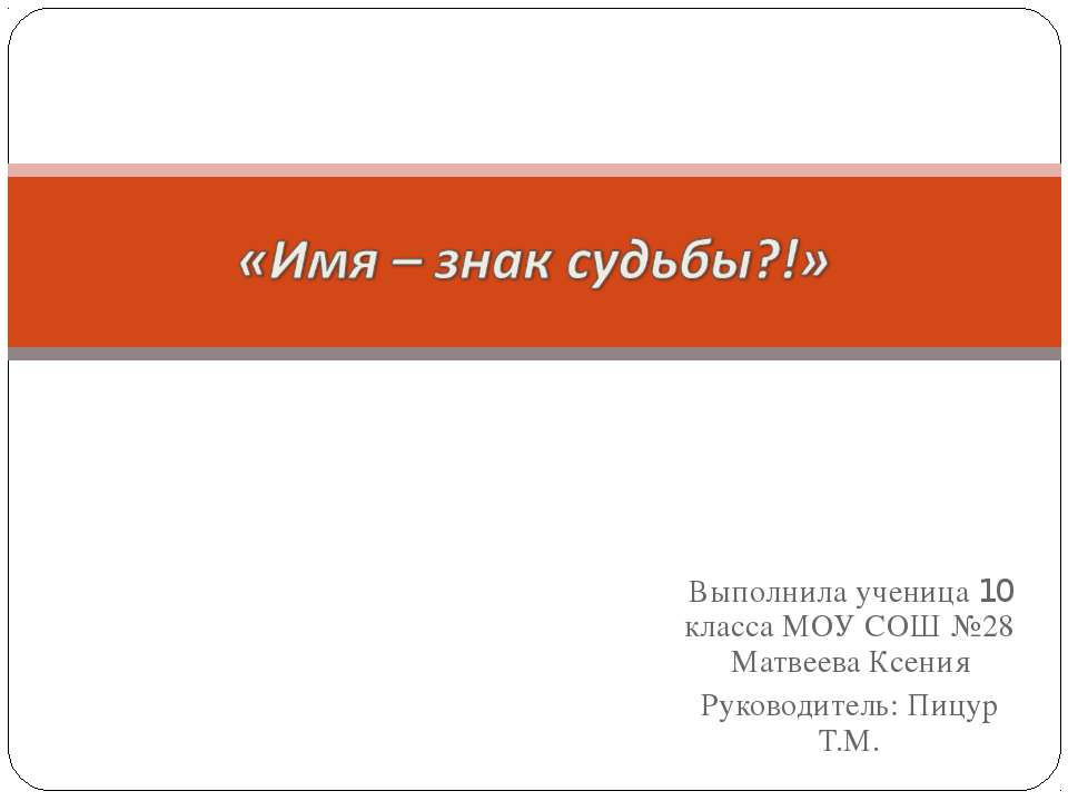 Просмотреть и скачать презентацию на тему "Имя – знак судьбы"