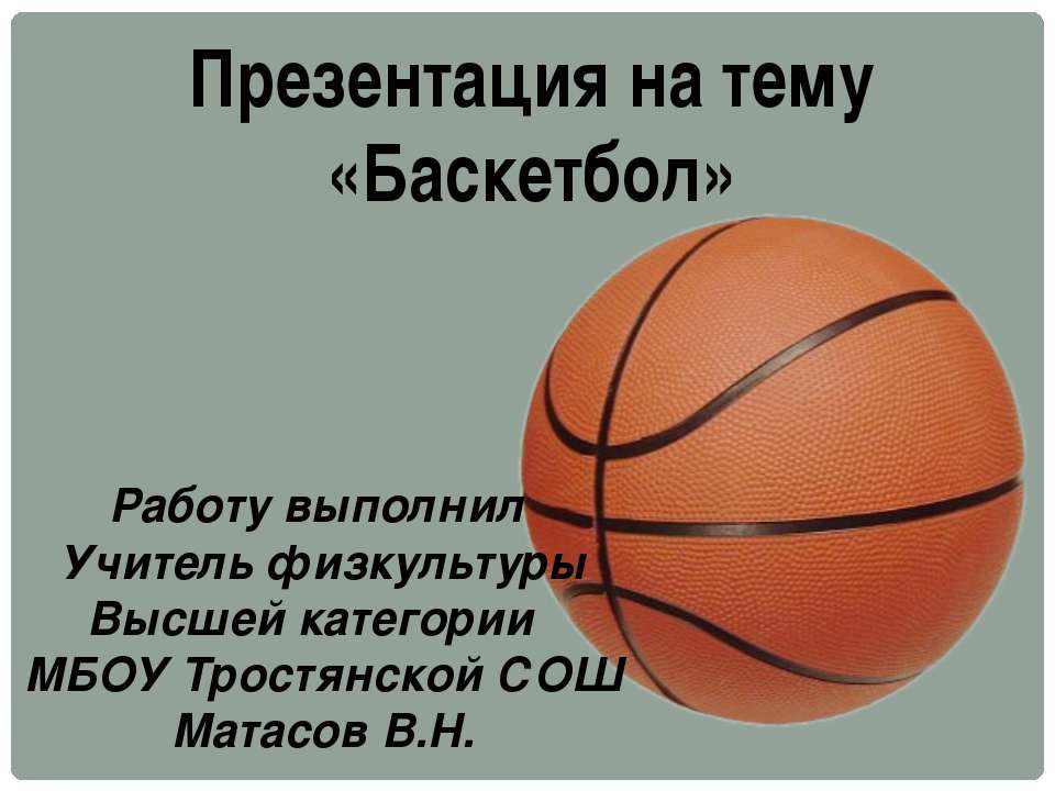 Презентация на тему «Баскетбол» Работу выполнил Учитель физкультуры Высшей категории МБОУ Тростянской СОШ Матасов В.Н.