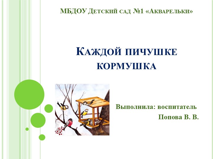 Презентация - "Проект "Каждой пичужке кормушка""