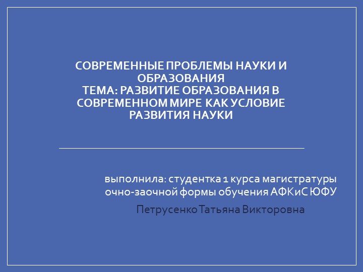 Просмотреть и скачать презентацию на тему "Презентация "Развитие образования в современном мире как условие развития науки""