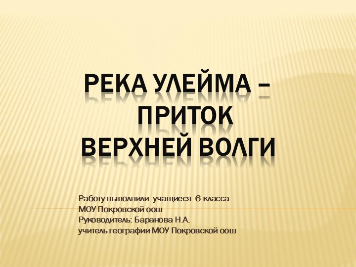 Просмотреть и скачать презентацию на тему ""Река Улейма - приток верхней Волги""
