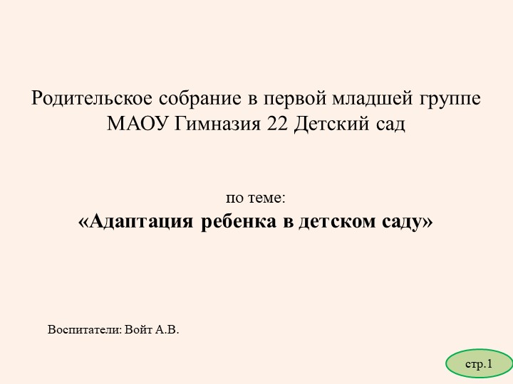 Просмотреть и скачать презентацию на тему "Работа с родителями. Родительское собрание "Адаптация""