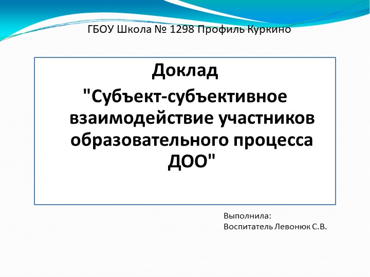 "Субъект-субъективное взаимодействие участников образовательного процесса ДОО"