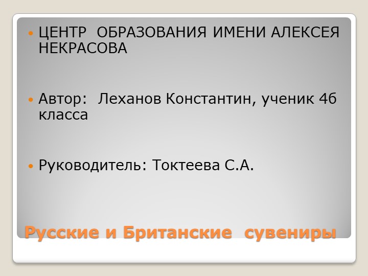 - Узнать , откуда появилось слово «сувенир», что знают ребята из нашего класса о сувенирах России и Британии, так как мы изучаем английский язык.