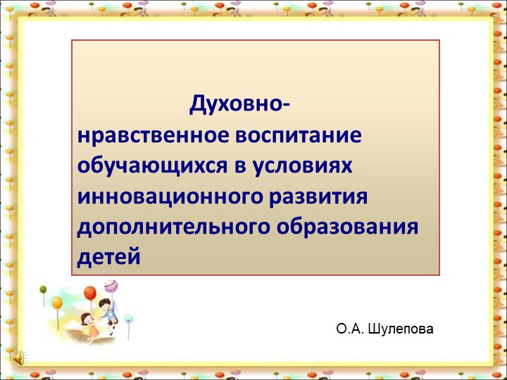 Презентация - "Презентация "Духовно-нравственное воспитание обучающихся в условиях инновационного развития дополнительного образования детей""