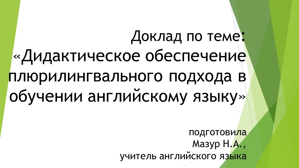Презентация - "Презентация "Дидактическое обеспечение плюрилингвального подхода в обучении английскому языку""