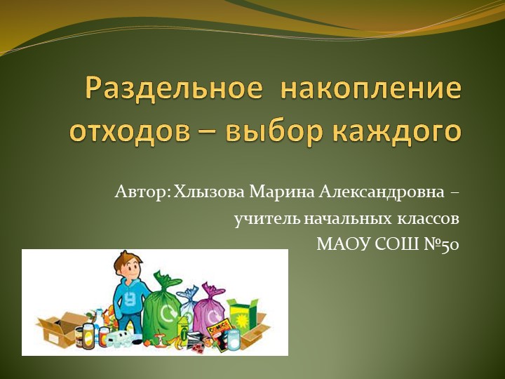 Просмотреть и скачать презентацию на тему ""Раздельный сбор отходов" начальная школа"