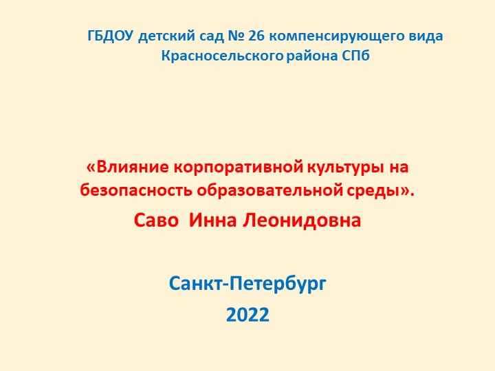 Презентация - "«Влияние корпоративной культуры на безопасность образовательной среды»."