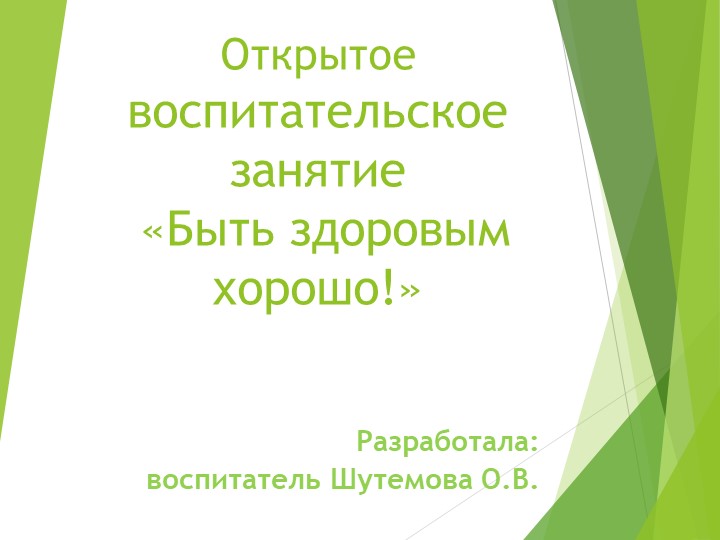 Презентация - "Презентация к открытому воспитательскому занятию "Быть здоровым хорошо!""