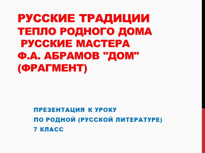 Просмотреть и скачать презентацию на тему "Презентация к уроку родной литературы по фрагменту романа "Дом" Ф.А.Абрамова"