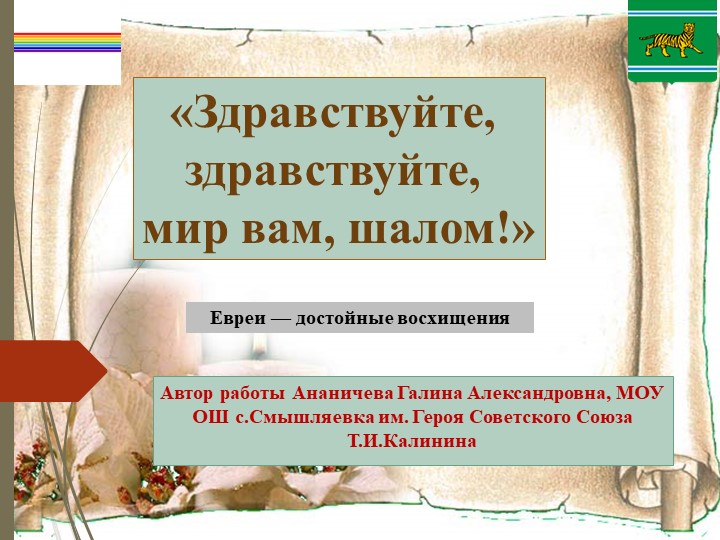 Автор работы Ананичева Галина Александровна, МОУ ОШ с.Смышляевка им. Героя Советского Союза Т.И.Калинина