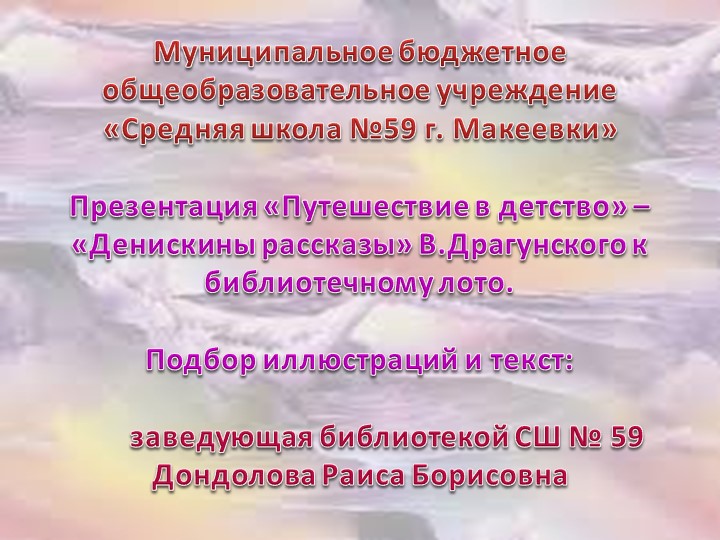 Просмотреть и скачать презентацию на тему "Презентация "Путешествие в детство". Виктор Драгунский. Материалы к библиотечному лото."
