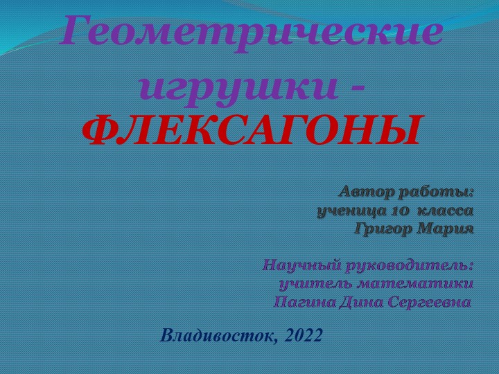 Многие считают геометрию неинтересным и скучным предметом, состоящим исключительно из фигур, формул, доказательств и решений геометрических задач. Всё это, конечно, включает в себя геометрия, но скучным этот предмет назвать никак нельзя. Человек с самого раннего детства сталкивается с этой интересной наукой. Геометрия окружает нас повсюду, и без нее не обходится ни одна наука. Я считаю актуальным показать, что геометрия интересный и познавательный предмет для изучения. В этом мне поможет мир геометрических игрушек – флексагонов.