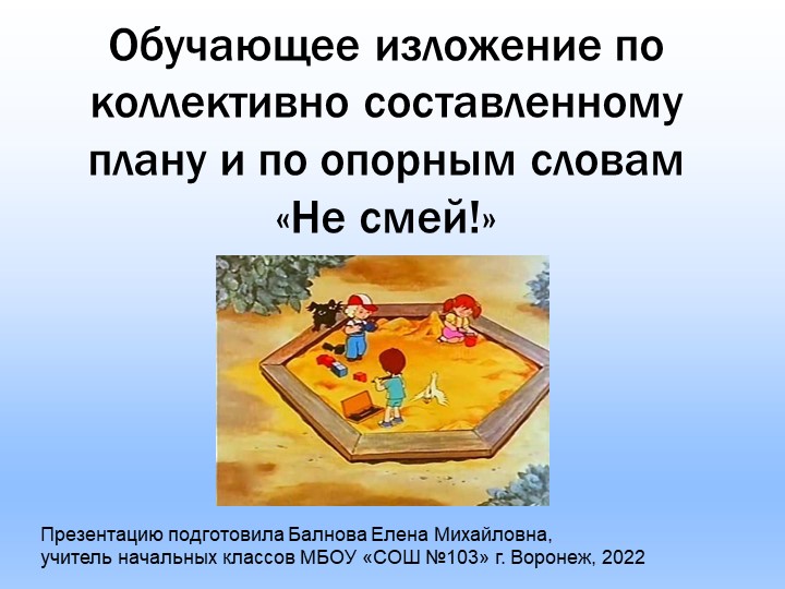 Просмотреть и скачать презентацию на тему "Презентация к уроку по русскому языку на тему: "Обучающее изложение по коллективно составленному плану и по опорным словам «Не смей!» (3 класс)"