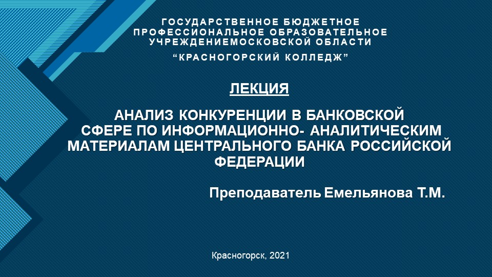 Презентация - "АНАЛИЗ КОНКУРЕНЦИИ В БАНКОВСКОЙ СФЕРЕ"