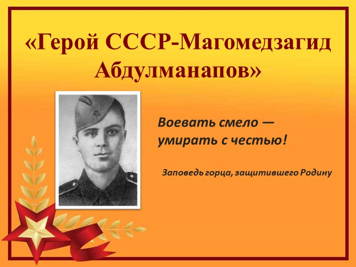 Презентация - "Презентация на тему «Герой ССР-Магомедзагид Абдулманапов"