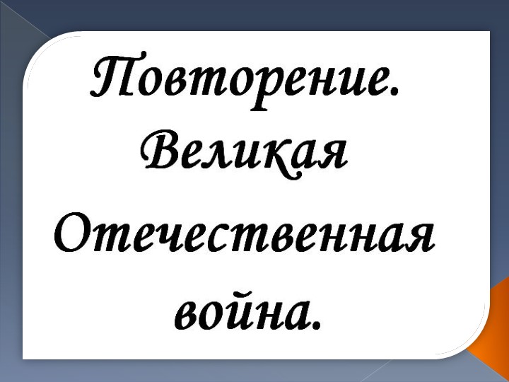 Презентация - "Презентация по истории Отечества на тему "Повторение. Великая Отечественная война" (9 класс с интеллектуальными нарушениями)"