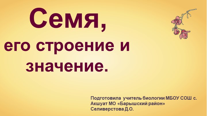 Просмотреть и скачать презентацию на тему "Семя и его значение"