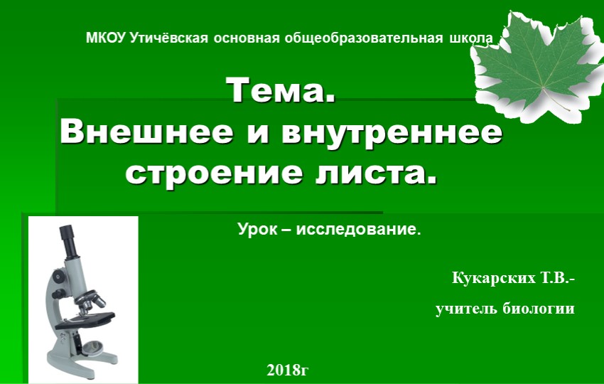 Урок – исследование «Внешнее и внутреннее строение листа».