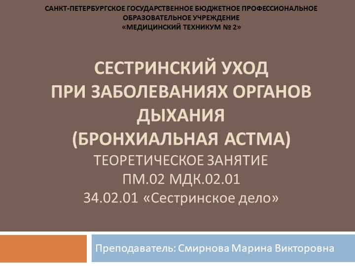 Презентация - "Презентация теоретического занятия "Сестринский уход при бронхиальной астме""