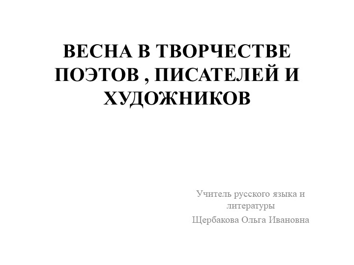 ВЕСНА В ТВОРЧЕСТВЕ ПОЭТОВ , ПИСАТЕЛЕЙ И ХУДОЖНИКОВ