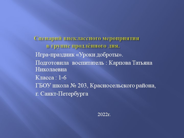 Презентация - "Сценарий внеклассного мероприятия в ГПД "Уроки-доброты"."