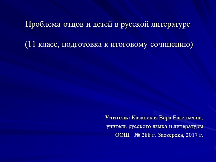 Проблема «отцов и детей» - одна из вечных в русской литературе. О ней писали, пишут и будут писать.