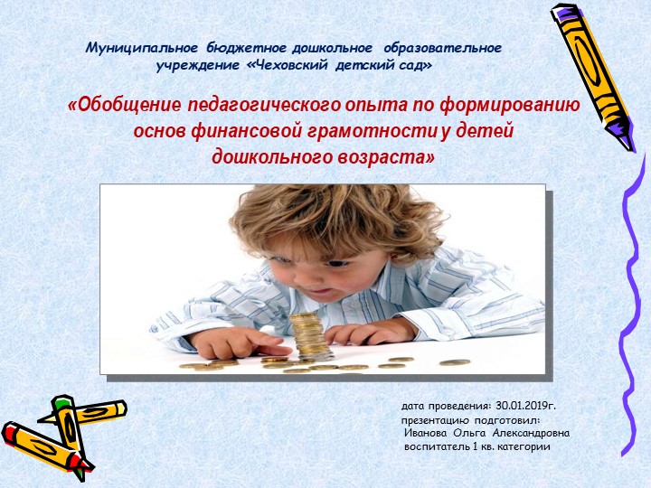 Презентация - "«Обобщение педагогического опыта по формированию основ финансовой грамотности у детей дошкольного возраста»"