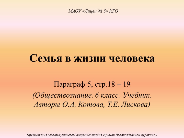 Презентация создана учителем обществознания Ириной Владиславовной Куракиной