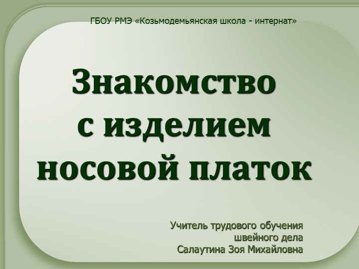 Просмотреть и скачать презентацию на тему "Знакомство с изделием "Носовой платок""
