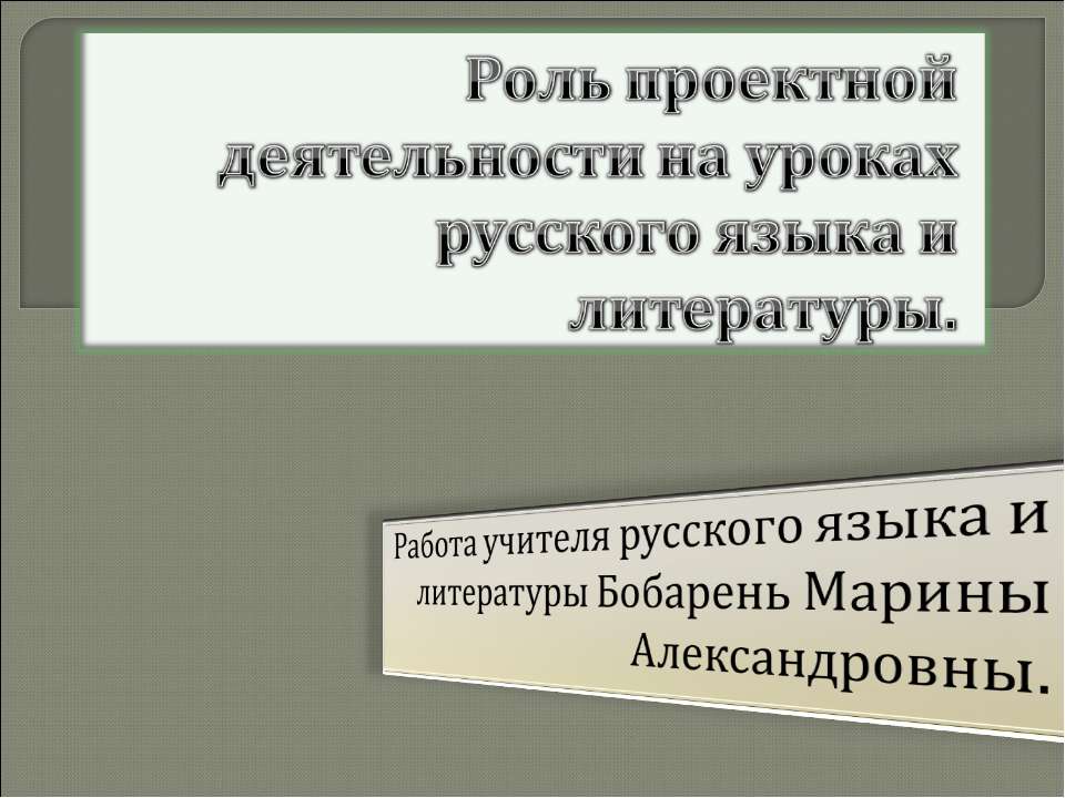 Презентация - "Роль проектной деятельности на уроках русского языка и литературы"