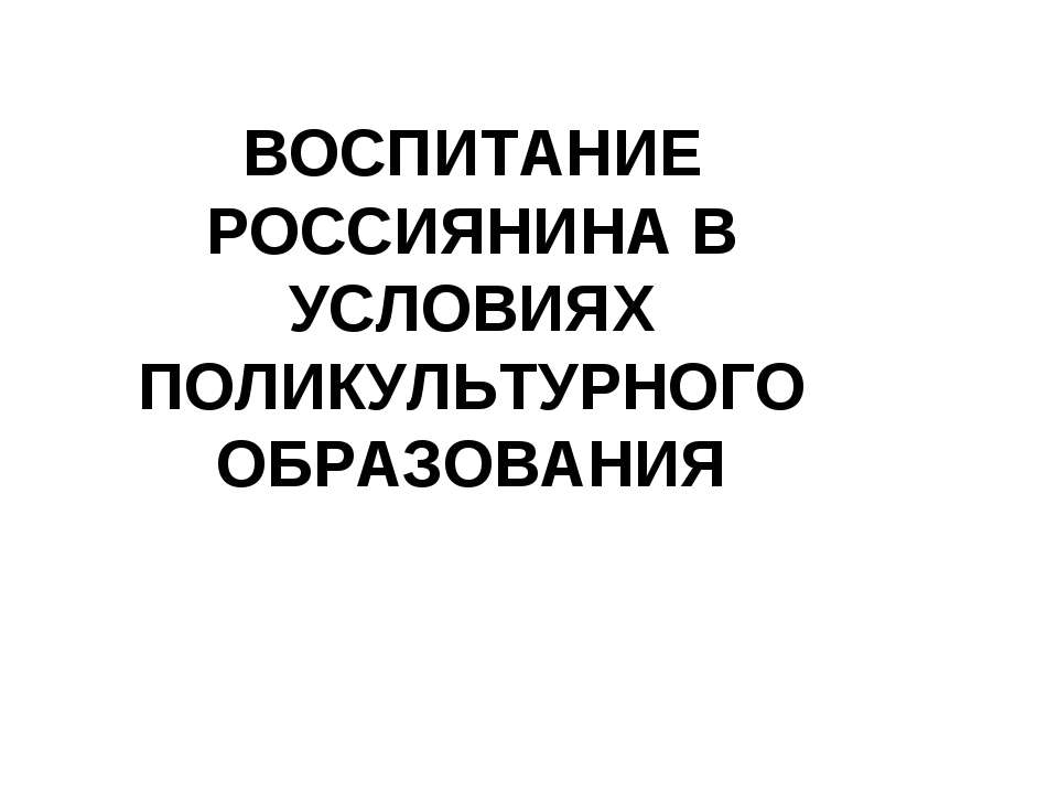 Просмотреть и скачать презентацию на тему "Воспитание Россиянина в условиях поликультурного образования"